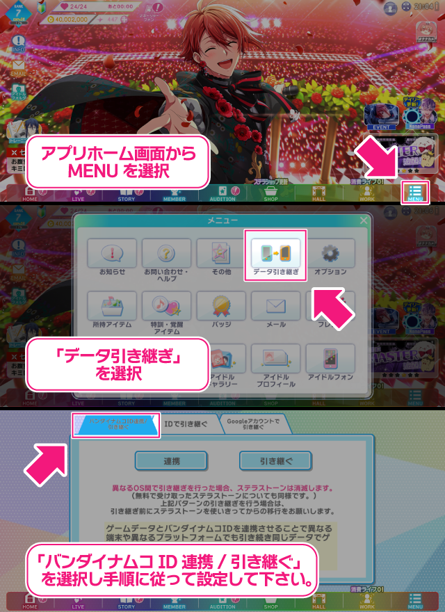手順1:ゲームアカウントをバンダイナムコIDに連携