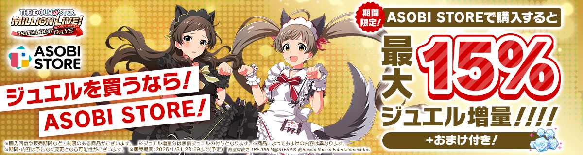 WEB STOREで購入・獲得したミリオンジュエルなどの反映にはゲームの再起動が必要です。