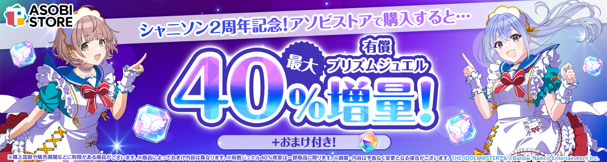 シャニソン2周年CP 1回限定!プリズムジュエル12,000個